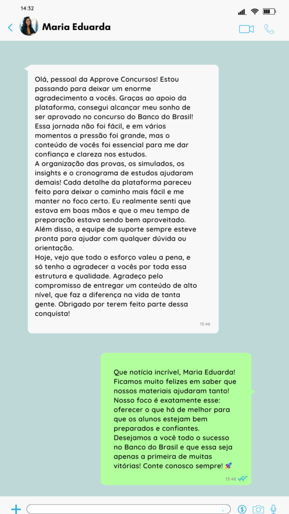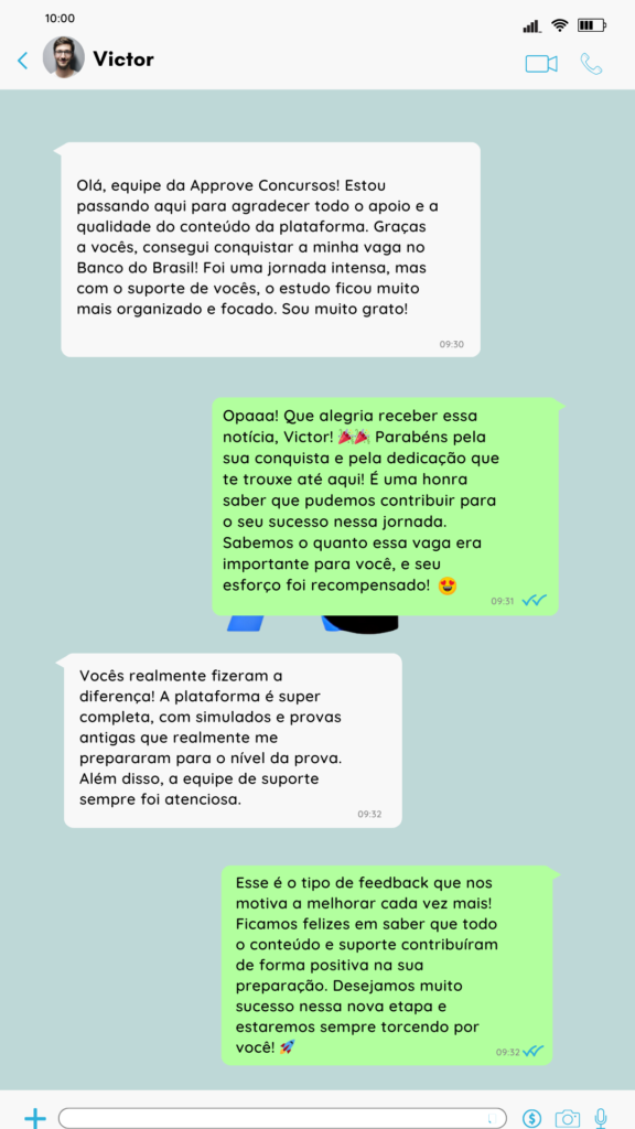 A empresa Approve Concursos, não tem nenhuma relação institucional com o Facebook, Instagram, WhatsApp ou Facebook Messenger. Ao abordar questões financeiras, de qualquer um dos nossos produtos, site, vídeos, palestras, programas ou outros conteúdos, fazemos todos os esforços para garantir que estes representem fielmente nossos cursos e sua capacidade de crescer o seu negócio e melhorar sua vida. No entanto, a Approve Concursos não garante que você conseguirá obter quaisquer resultados ou ganhar algum dinheiro usando qualquer uma de nossas ideias, ferramentas, estratégias e recomendações, e nada em nossos sites é uma promessa ou garantia para você de ganhos futuros. Tudo depende da sua aplicação e esforço.